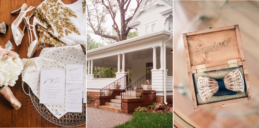 A huge thanks to Ritchie Hill for letting me shoot there (on possibly the rainiest day of the year!), Brackish Bowties for sending me their Bobwhite to photograph on Austin, Shine Invitations for the lovely paper suite, and Chelish Moore for providing an incredibly perfect bouquet to go with our golden-glam theme!